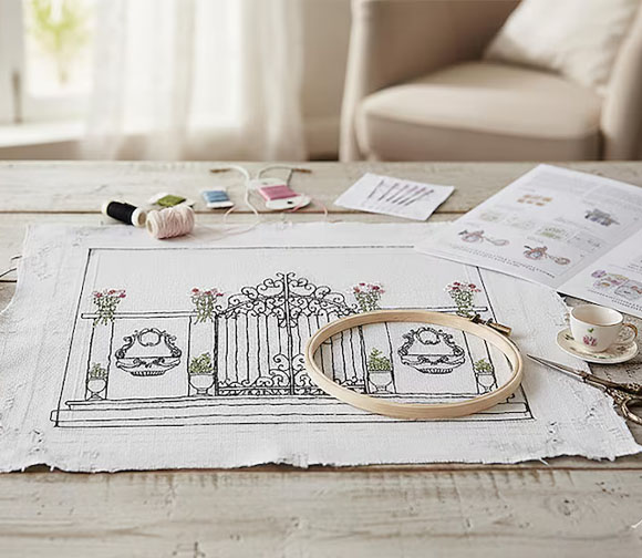 This DIY embroidery kit is a perfect way to create your own beautiful embroidered scene. The kit includes everything you need to create a modern embroidered depiction of a French-scrolled iron gate with sprays of pink flowers and two matching fountains. The kit includes high-quality materials and easy-to-follow instructions, making it perfect for beginners. Whether you're new to embroidery or looking to add to your existing skills, this kit is a great choice. The finished piece will make a beautiful addition to any room and makes a wonderful gift for anyone interested in DIY crafts or the art of embroidery.