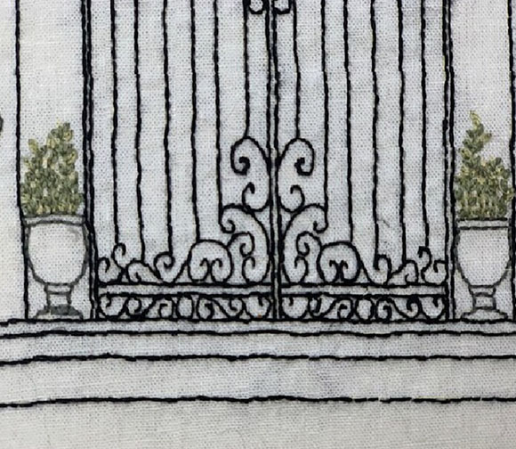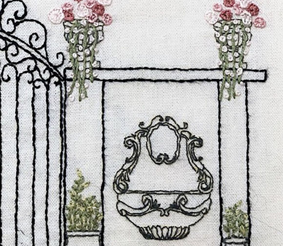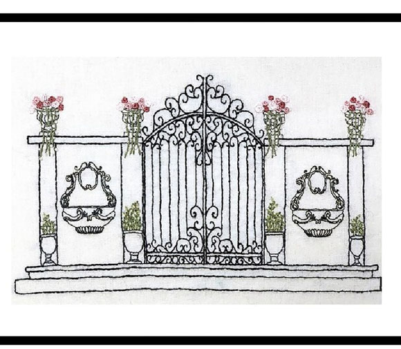 Drawing based on a French iron gate with floral urns and cascading fountain. Perfect kit for hand crafters, quilters, sewers.This would be a fun project to begin your sewing journey-you just need to practice the stitches. Youtube has great videos to teach you the stitches. Since I'm left-handed, it would be easier for you to watch the experts. I have listed a few videos in the general directions.- Finished size is 8 x 10". Great frames at Ikea and Michaels and Goodwill.