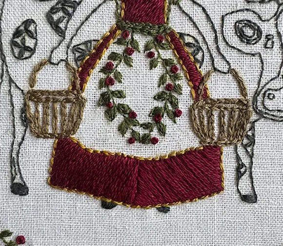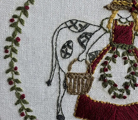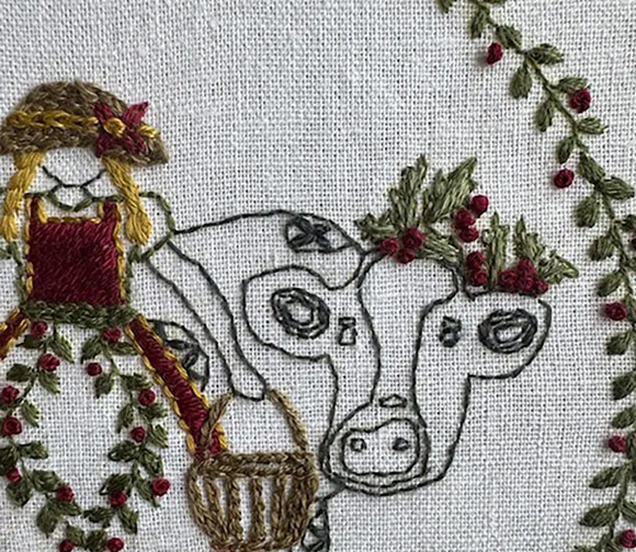 This DIY embroidery kit is a fun and festive way to create your own embroidered 8 maids a-milking. The kit includes everything you need to create a modern embroidered depiction of a maid with her cow and buckets surrounded by holly leaves and berries. The design is inspired by the classic Christmas song "The Twelve Days of Christmas" and is sure to add a touch of whimsy to your holiday decorations. The kit includes high-quality materials and easy-to-follow instructions, making it perfect for beginners. Whether you're new to embroidery or looking to add to your existing skills, this kit is a great choice. The finished piece will make a charming addition to your holiday decorations and make a wonderful gift for anyone interested in DIY crafts or the art of embroidery.
