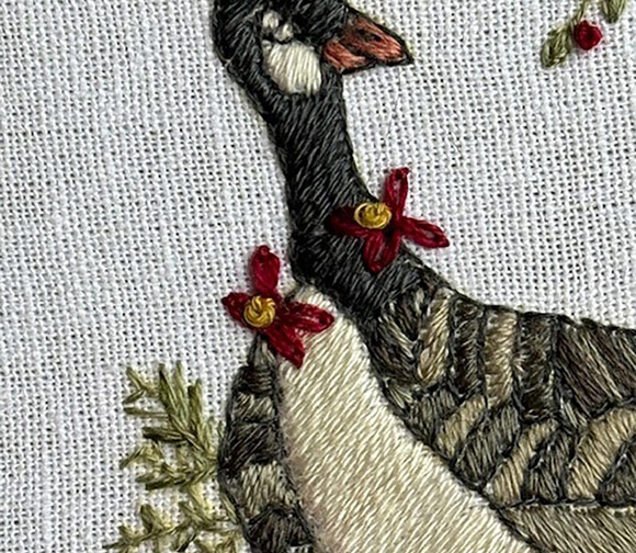 This DIY embroidery kit is a fun and festive way to create your own embroidered 6 geese a-laying. The kit includes everything you need to create a modern embroidered depiction of a goose sitting on a nest of eggs surrounded by holly leaves and berries. The design is inspired by the classic Christmas song "The Twelve Days of Christmas" and is sure to add a touch of whimsy to your holiday decorations. The kit includes high-quality materials and easy-to-follow instructions, making it perfect for beginners. Whether you're new to embroidery or looking to add to your existing skills, this kit is a great choice. The finished piece will make a charming addition to your holiday decorations and make a wonderful gift for anyone interested in DIY crafts or the art of embroidery.