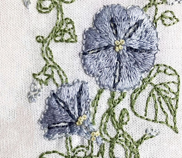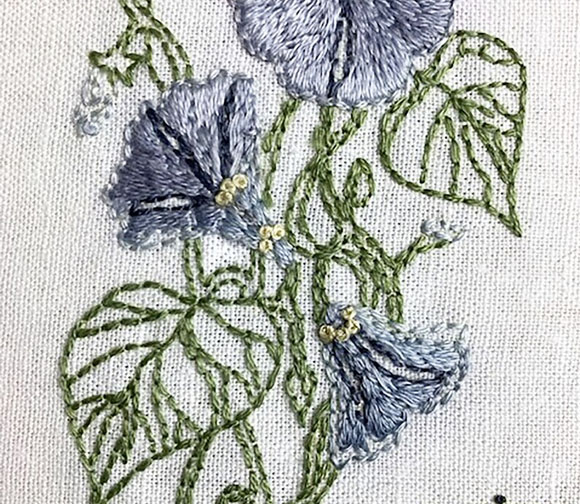 This DIY embroidery kit is perfect for creating a beautiful botanical illustration of a morning glory flower. The kit includes everything you need to create a modern embroidered version of this stunning flower, including high-quality materials and easy-to-follow instructions. Whether you're new to embroidery or looking to expand your existing skills, this kit is a great choice. The finished piece will make a beautiful addition to any room and makes a wonderful gift for anyone interested in DIY crafts or the art of embroidery. With its vibrant colors and delicate details, this embroidery project is sure to impress. The morning glory has subtle shades of blue and green floss.