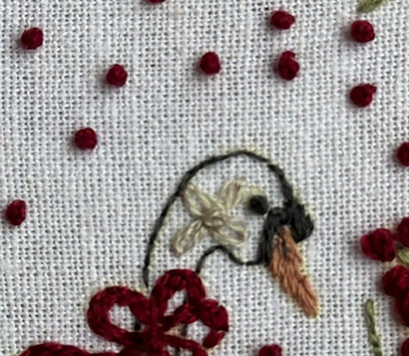This DIY embroidery kit is a fun and festive way to create your own embroidered 7 swans a-swimming. The kit includes everything you need to create a modern embroidered depiction of a swan swimming surrounded by holly leaves and berries. The design is inspired by the classic Christmas song "The Twelve Days of Christmas" and is sure to add a touch of whimsy to your holiday decorations. The kit includes high-quality materials and easy-to-follow instructions, making it perfect for beginners. Whether you're new to embroidery or looking to add to your existing skills, this kit is a great choice. The finished piece will make a charming addition to your holiday decorations and make a wonderful gift for anyone interested in DIY crafts or the art of embroidery.