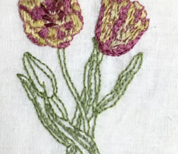 This DIY embroidery kit is perfect for creating a beautiful botanical illustration of a tulip flower. The kit includes everything you need to create a modern embroidered version of this stunning flower, including high-quality materials and easy-to-follow instructions. Whether you're new to embroidery or looking to expand your existing skills, this kit is a great choice. The finished piece will make a beautiful addition to any room and makes a wonderful gift for anyone interested in DIY crafts or the art of embroidery. With its vibrant colors and delicate details, this embroidery project is sure to impress. The tulip has subtle shades of pink, yellow and green floss.