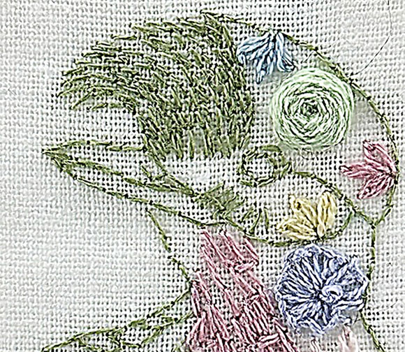 If you want to change the colors, I include the instructions for 2 other colorways—a blue version and a magenta version.- Finished size fits into an 8" hoop.