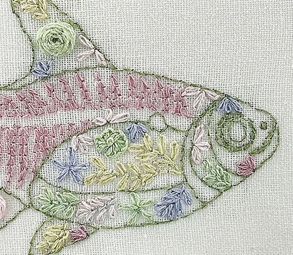 If you want to change the colors, I include the instructions for 2 other colorways—a blue version and a magenta version.- Finished size fits into an 8" hoop.